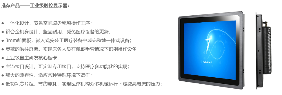 醫(yī)療衛(wèi)生關(guān)系著千千萬萬人民的健康生活,醫(yī)療行業(yè)的特殊性,常常遇到醫(yī)療機械設備,要求其應用的觸控設備需具有操作簡便精確,耐酒精消毒擦拭清洗,并需要支持佩戴手套可操作等特點。