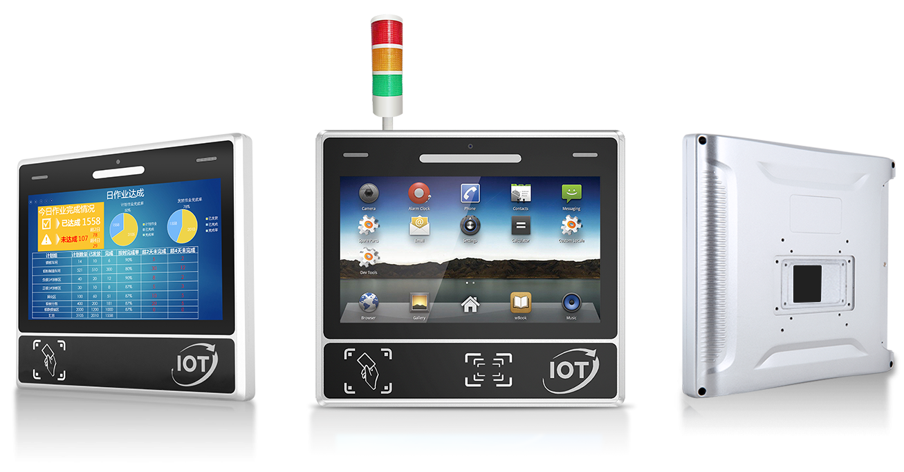 整機鋁合金一體打造,采用自主研發主板,功耗低,能保證在惡劣環境下長時間穩定工作,可升級IC卡識別、二維碼、掃描槍、報警燈、HDMI輸入模塊等,擴展性、適應性佳,滿足SOP、任務瀏覽、設備管理、缺陷登記、異常報警等功能,廣泛應用于智慧工廠、智慧食堂、智慧校園、智慧會議預約等場所。