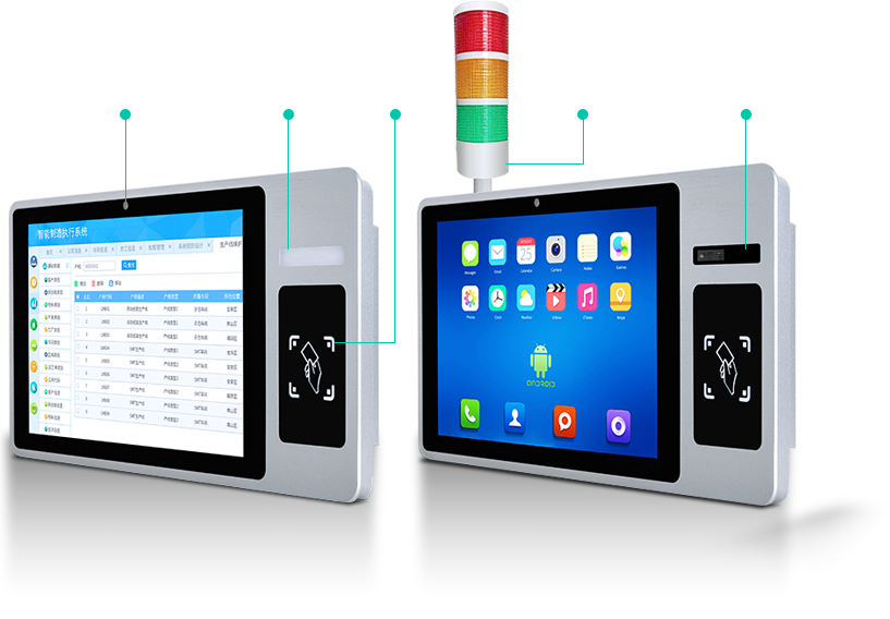 整機鋁合金一體打造,采用自主研發主板,功耗低,能保證在惡劣環境下長時間穩定工作,可升級IC卡識別、二維碼、掃描槍、報警燈、HDMI輸入模塊等,擴展性、適應性佳,滿足SOP、任務瀏覽、設備管理、缺陷登記、異常報警等功能,廣泛應用于智慧工廠、智慧食堂、智慧校園、智慧會議預約等場所。
